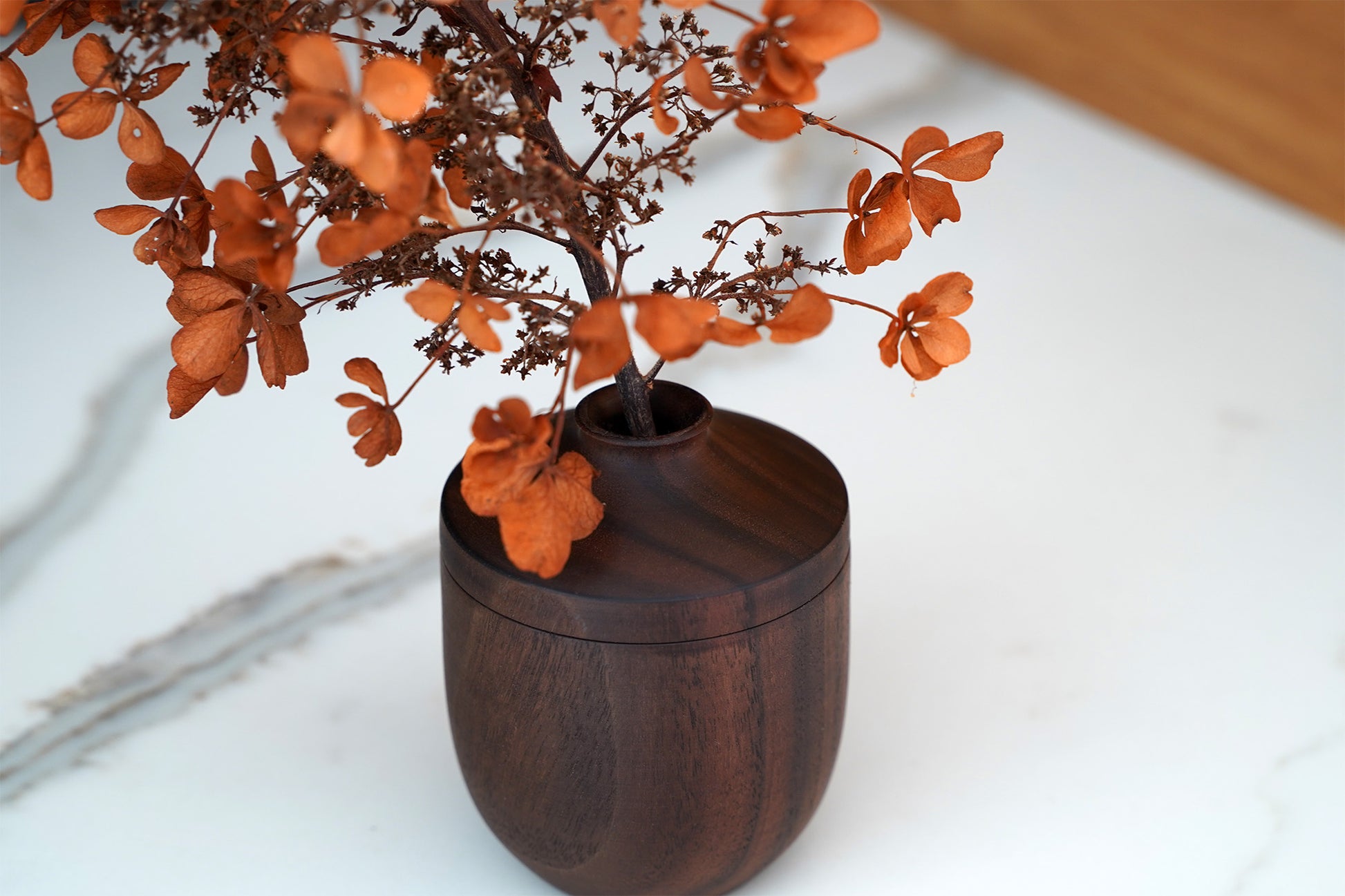 Walnut Bud Vase Box – Small Wooden Vase & Storage